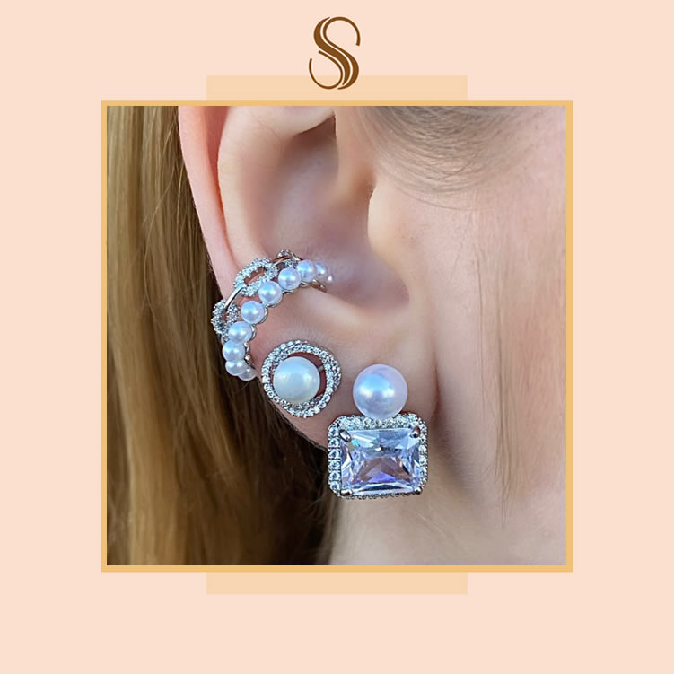 Brinco em pérola+zircônias e cravejado