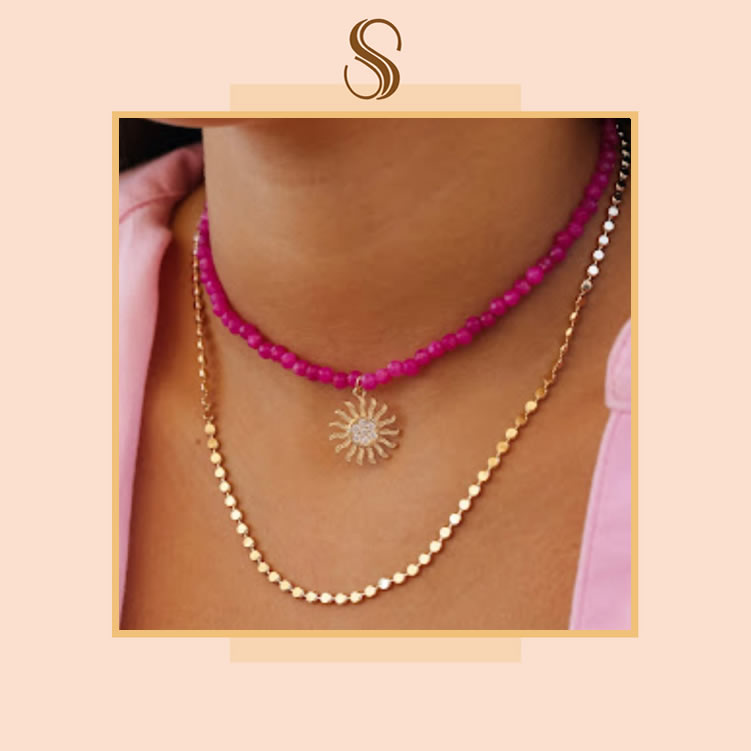 Colar Pedra Ágata Rosa c/pingente |